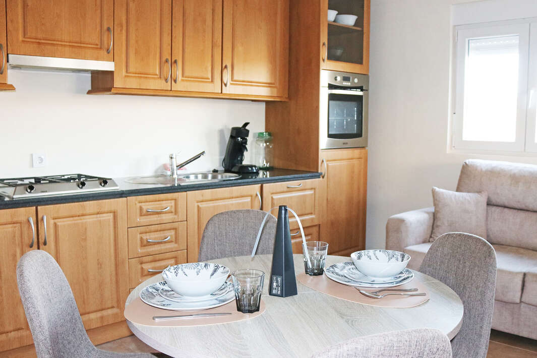Well-equipped kitchen (oven, 3-burner gas stove, Senseo coffee machine, 55-liter fridge with freezer compartment)