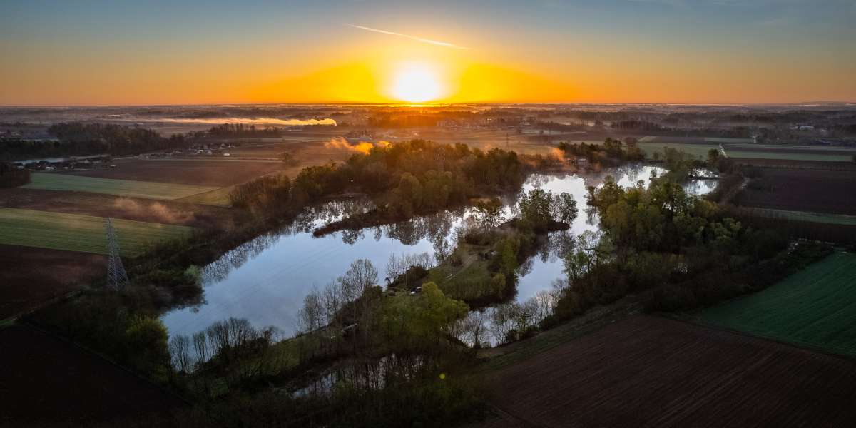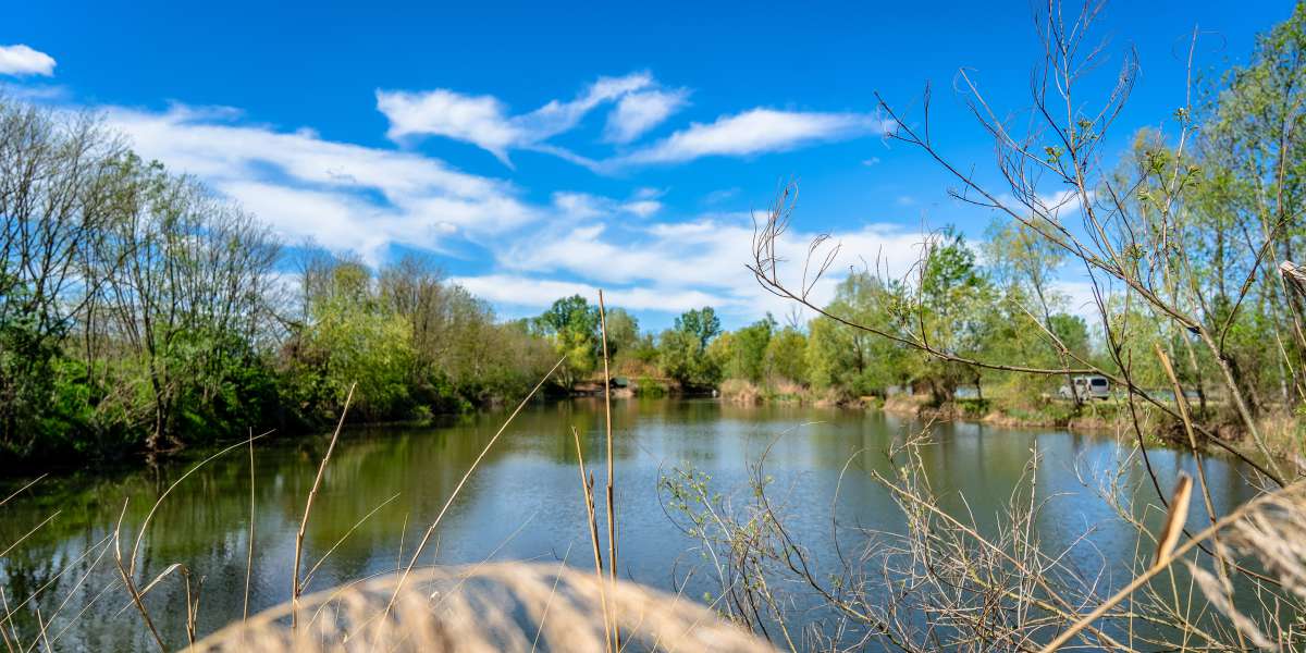 The complex originated in the years 1960 to 1970 as a gravel extraction site for roads and housing construction, and it spans 26 hectares, while the water itself is 19 hectares in size. It is a beautiful body of water to behold, with unique shapes where the 3 peninsulas give the water its distinctive appearance. The banks are covered with grass and trees, creating an atmospheric look, and the shores consist of vegetated edges, trees, and overhanging bushes.