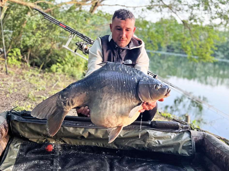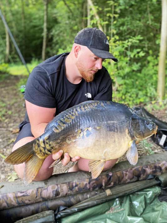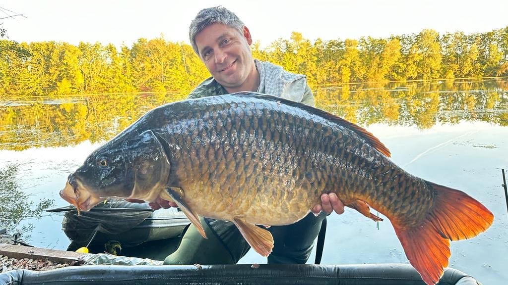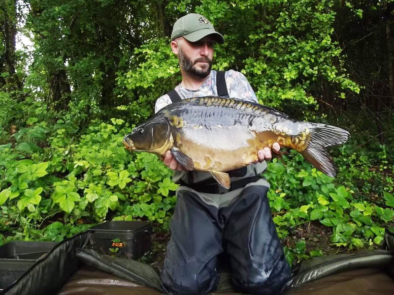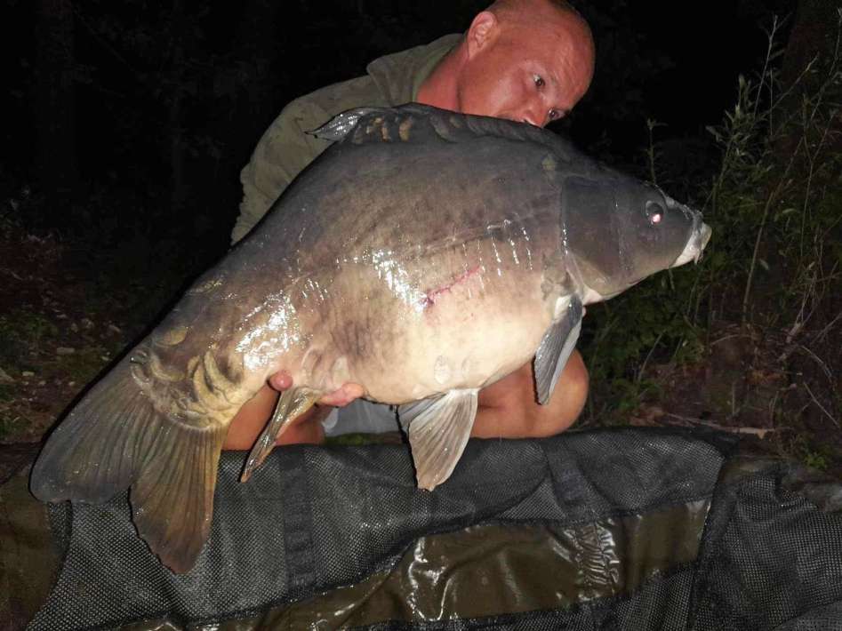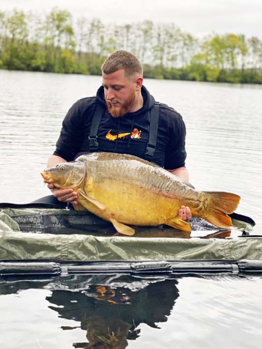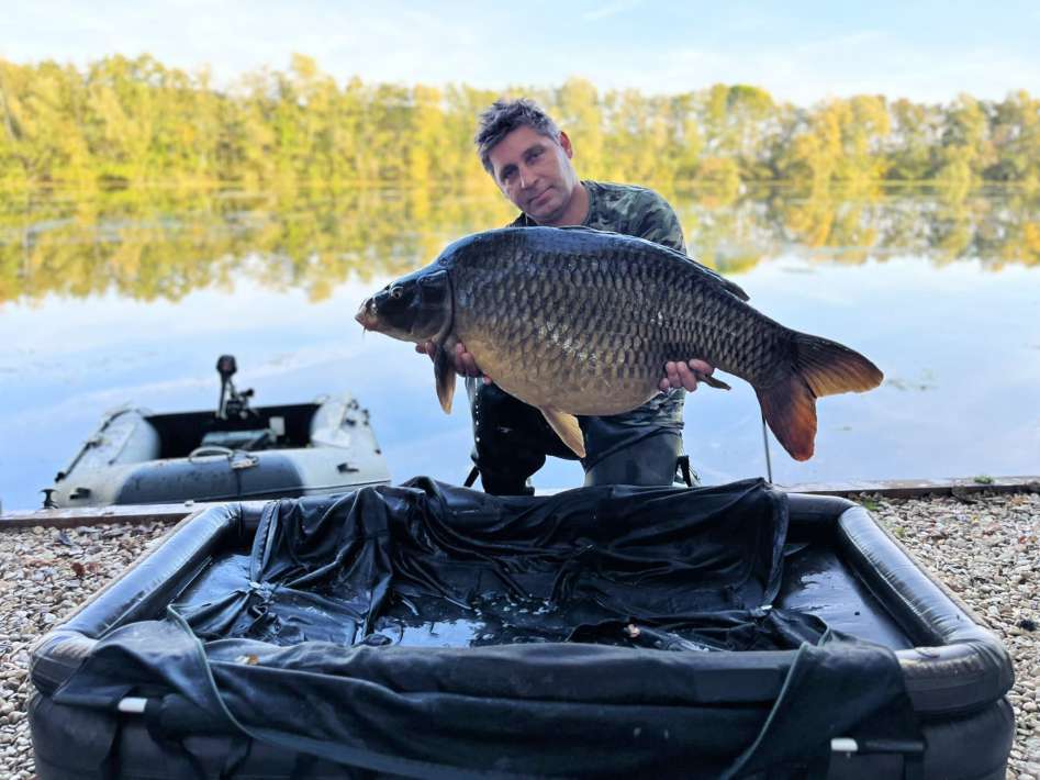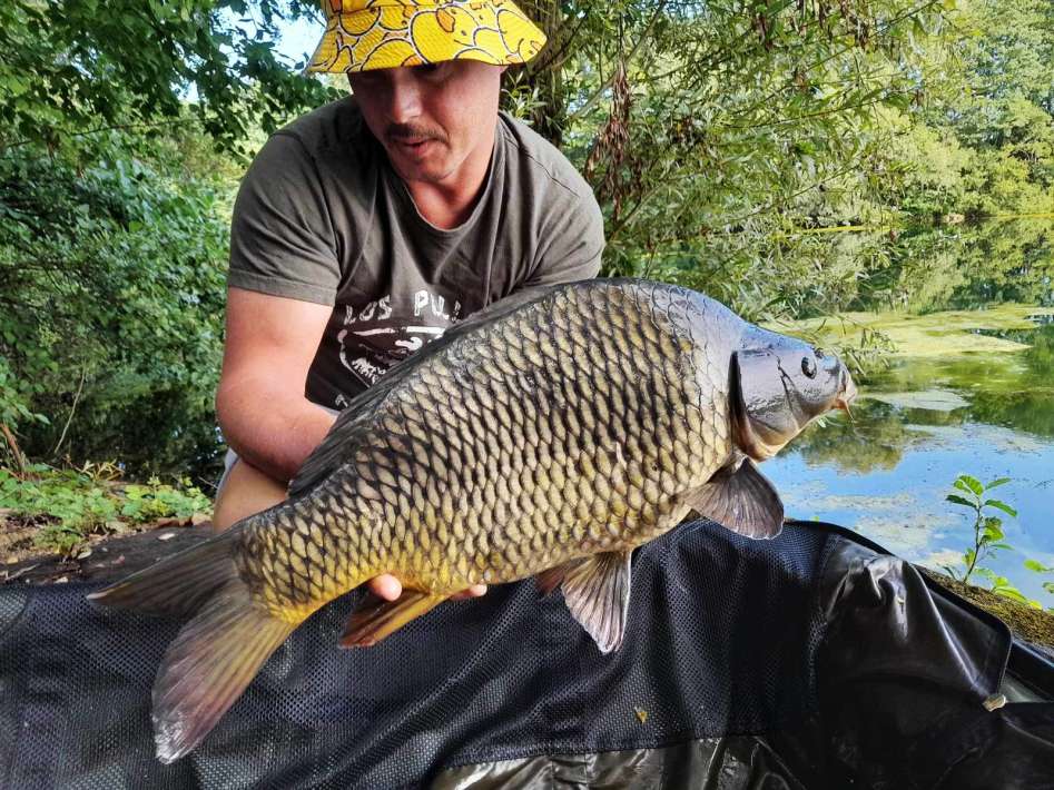 The fish stock is not yet fully known at Chef de Ville. Despite the fact that it used to be a pay lake with an excellent fish stock, there has been no active fishing in the intervening years. When Anthony first took the boat onto the water himself, large schools of large carp swam with him. But of course you can’t read any weights from this. This makes it even more exciting to discover the fish stock together with us. In the meantime, new fish have been purchased from a recognized breeder and released at Chef de Ville. These are chipped. This concerns 350 carp. Also, depending on what old stock comes to the surface, a release program may be set up with fish between 12 and 15 kilos. This is to keep the average weight nicely at level.