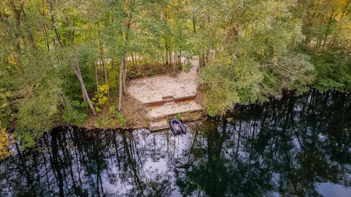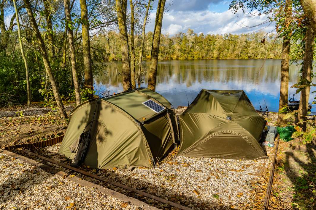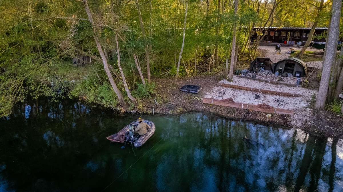 Chef de Ville has 8 spacious pegs. 7 of these pegs are placed next to each other on the southern bank and 1 in the back corner. Each peg can be reached by car, which you can simply leave behind your peg. Due to the higher banks, the owners have created pegs that are built up in steps. Despite the fact that they are all 1-person pegs, you can sit on a peg with 2 anglers in consultation. The maximum is 8 anglers. The ideal situation is to exclusively reserve Chef de Ville for 6 anglers. The bivvy can be placed at the top, while the rod pods can be placed a few steps lower. Spacious wide steps connect the different plateaus. It is a challenging water with varying bottom depths. For example, halfway through your peg there may be a plateau of hard gravel stones or beautiful weed beds where the fish like to hide and find their food. But don’t forget the overhanging trees where the fish like to stay. A water scope/viewing bucket is definitely recommended to place your rigs precisely between the weed or to find the large plateaus. The depths vary between 2 and 6 meters. Chef de Ville is a water that is susceptible to weed growth. Especially in the summer and early autumn, the weed can be strongly present. We therefore recommend that you always bring a boat.