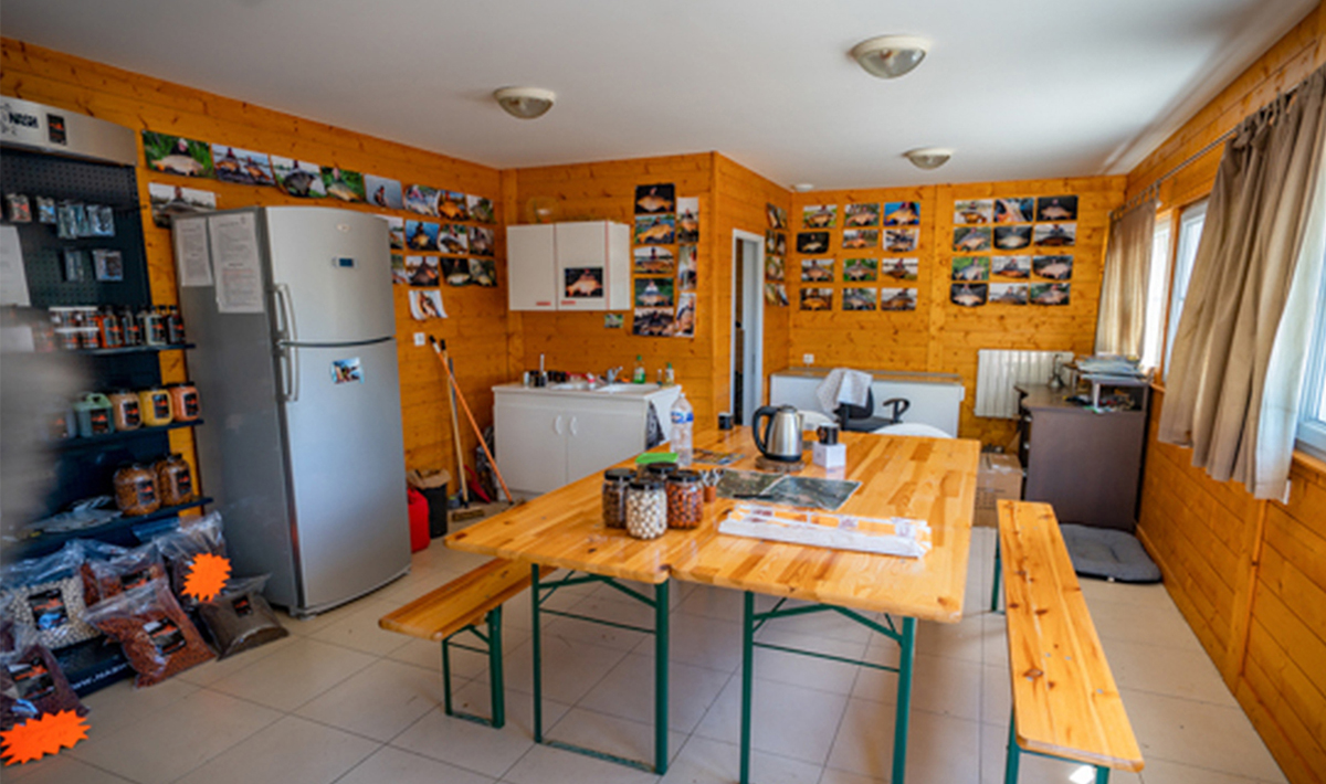 Between the gite and spot 1, on the spacious parking lot, there is a beautiful clubhouse with large refrigerators and freezers and charging points. Here you can also admire a large number of photos of the beautiful fish caught here. At the back of this building, you’ll find the sanitary facilities. There are 2 spacious showers here, separate sanitary facilities, and separate washrooms.