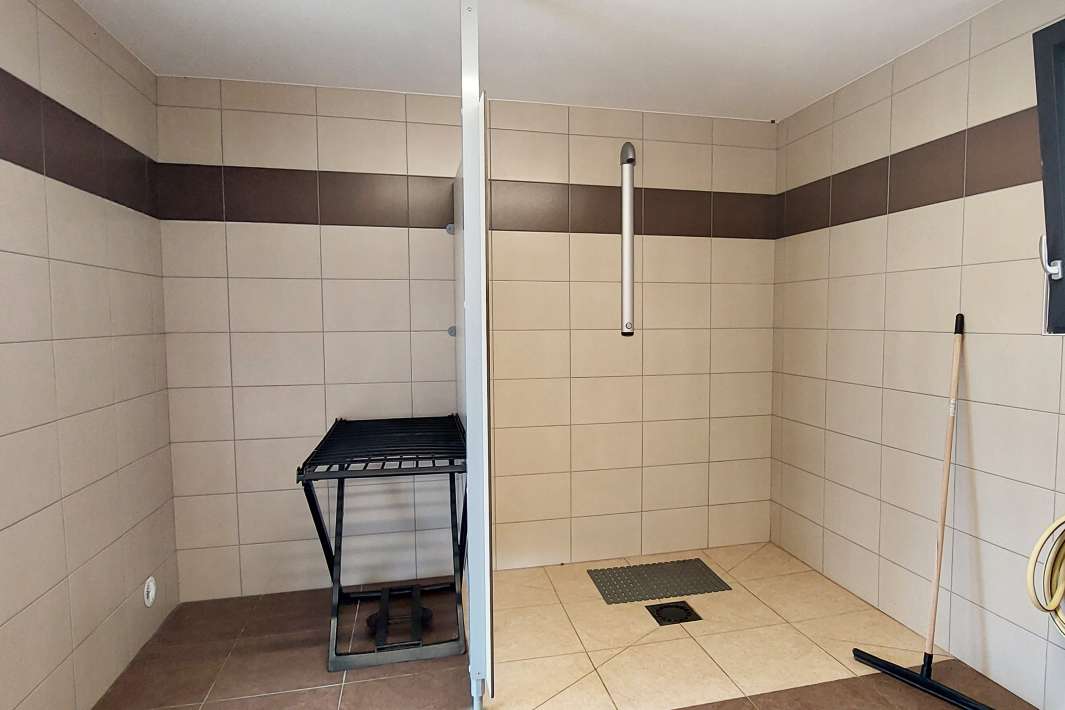 The clean, luxurious toilet building is located between both lakes. Here both lakes have their own shower and toilet facilities for which you have your own key. This building also has a communal area. Here you’ll find a freezer and washing-up facilities. The toilet building is about 50 meters away from both fishing spots.