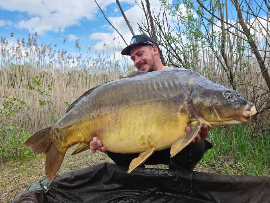 Thanks to excellent management over the past 15 years, a mouth-watering fish stock has been established. The current lake record is 37.8 kg, but there are already at least 6 fish currently swimming that easily exceed 30 kg. The number of fish between 25 and 30 kg is around 30, while the number of fish over 20 kg exceeds 90. The number of fish in the lake has been deliberately kept lower so that the fish have ample food to continue growing. This is also reflected in the impressive average weight of 19 kg. Nevertheless, the water contains 450 carp, of which 30% are common carp and 70% are mirror carp. This has been clearly visible over the past years, and even now, the fish continue to show excellent growth. Who knows what the future record will be.