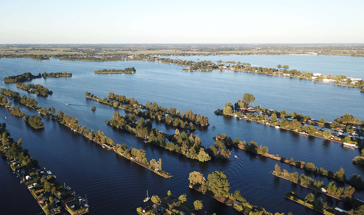 The Vinkeveense Plassen consists of three interconnected bodies of water with a total area of 1000 hectares. Because a lot of peat was extracted here in the past, various peninsulas and small islands were formed. Crystal clear water with overhanging trees, featuring deep and shallow sections.