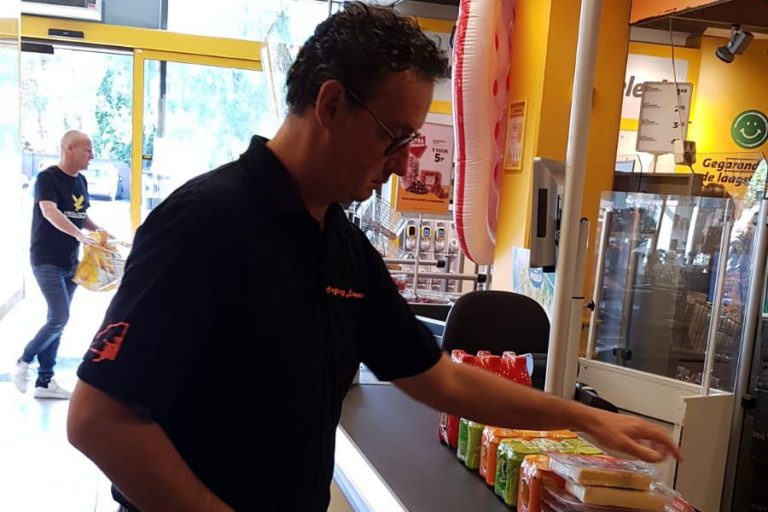Photo: Team members Tino Spaandonk and Stein Verheggen shop at the supermarket.